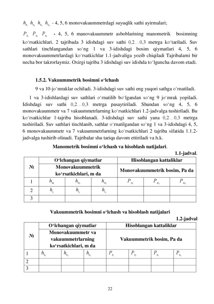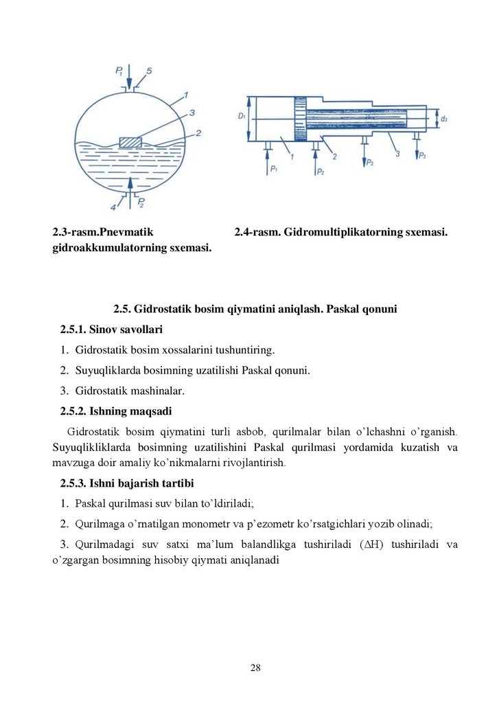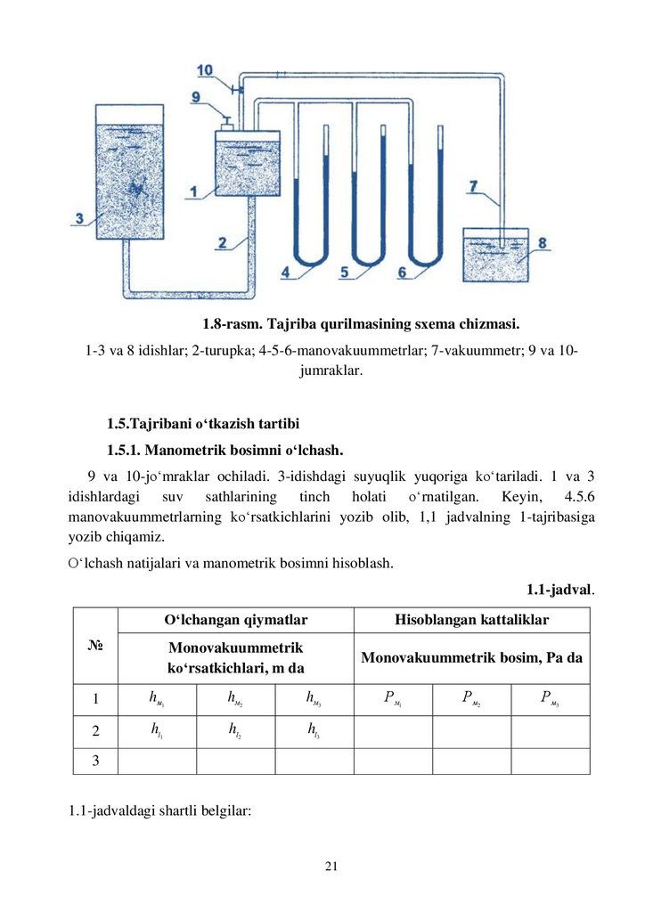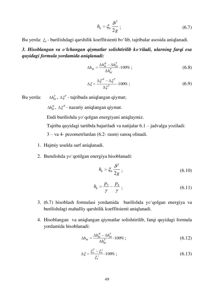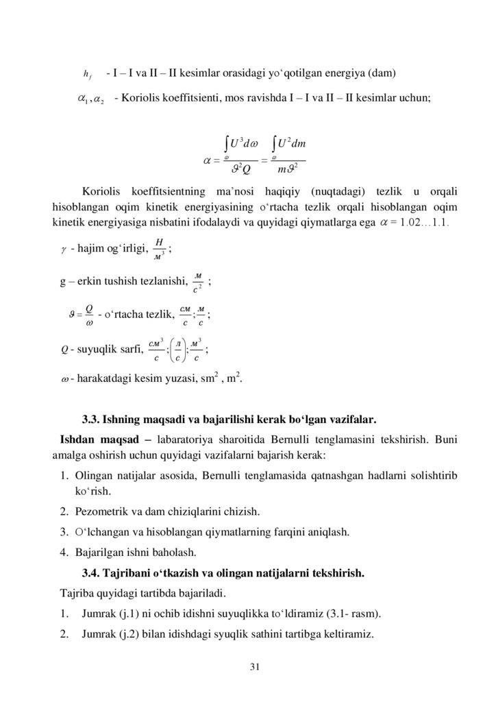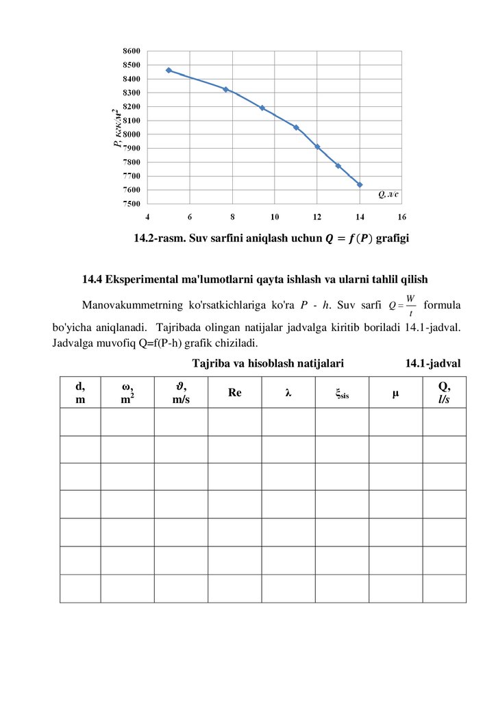 gidravlik hisoblarni bajarishda tajriba yo‘li bilan har хil gidravlik tizimlarni (nasoslar
