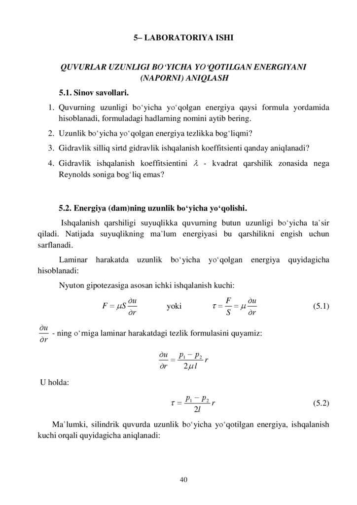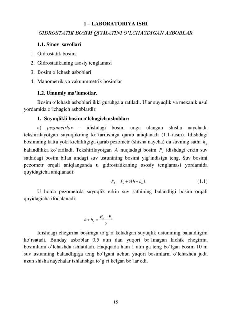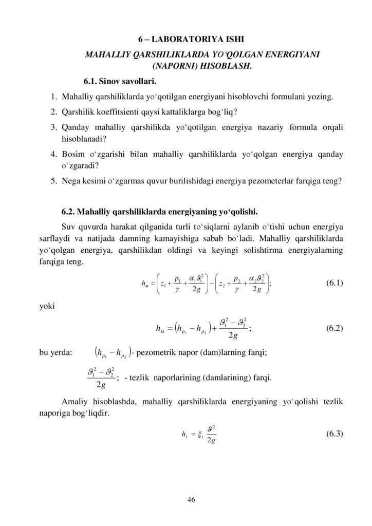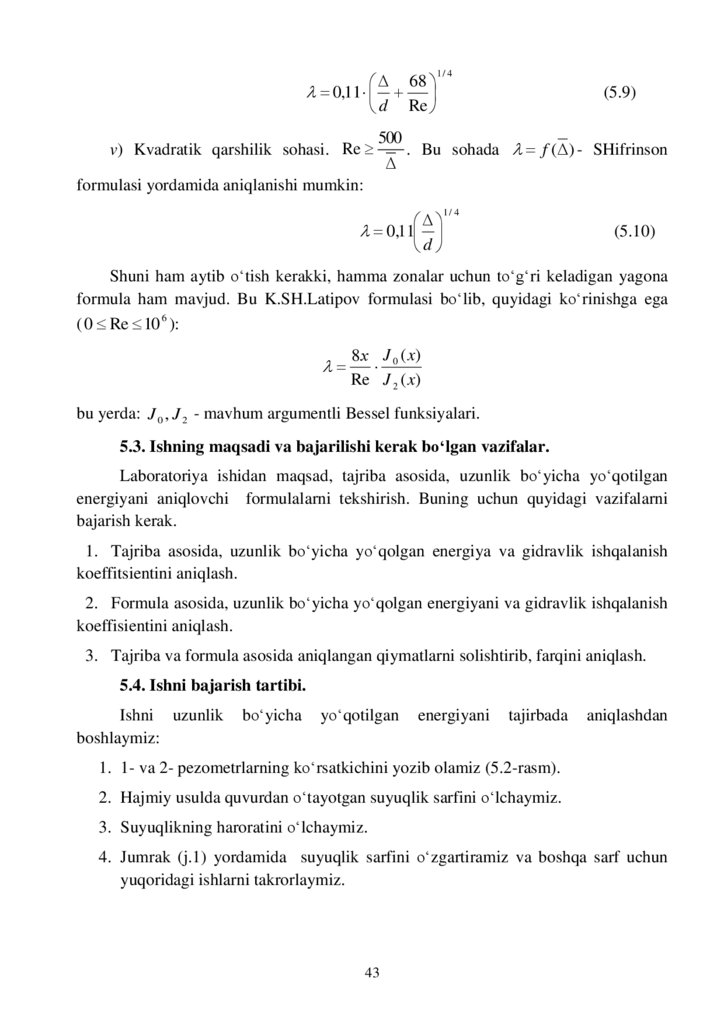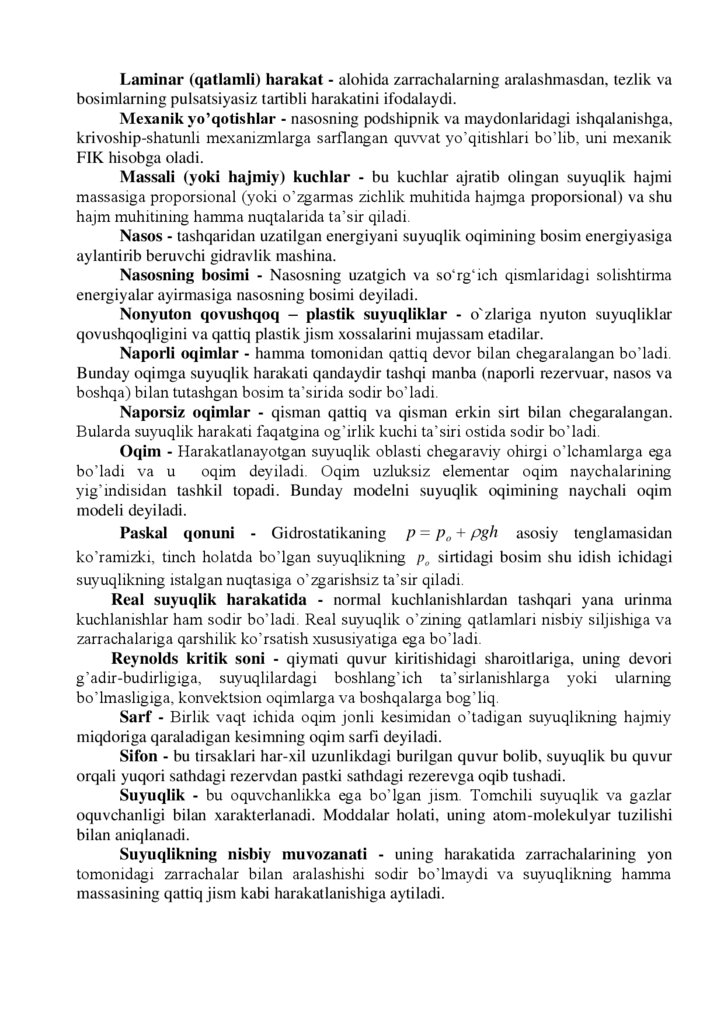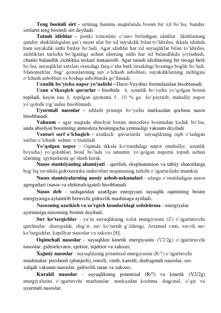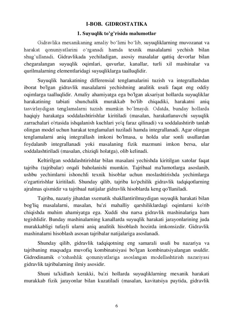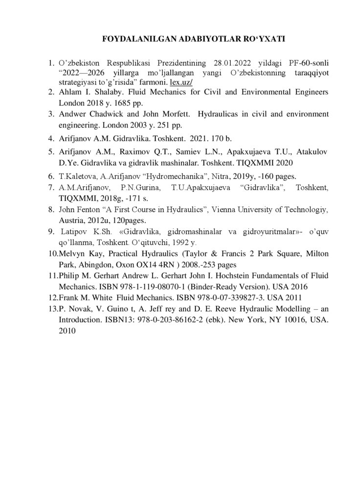 4. Arifjanov A.M. Gidravlika. Toshkent. 2021. 170 b.