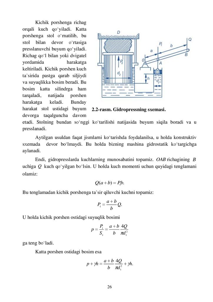 asosida ishlaydigan qurilmalar qo‘llaniladi. Foydalanilayotgan gidravlik tizimlar va