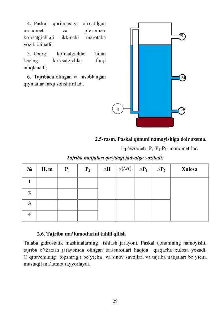 Gidrostatik bosim хossalarini tajribada kuzatish, b.paskal
