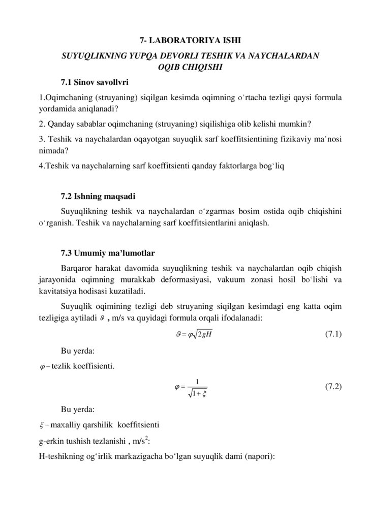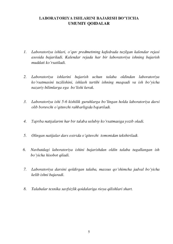 zarur nazariy ma’lumotlar berilgan va mustaqil laboratoriya tadqiqotlari o‘tkazish imkoniyati ko‘zda tutilgan. Shu
