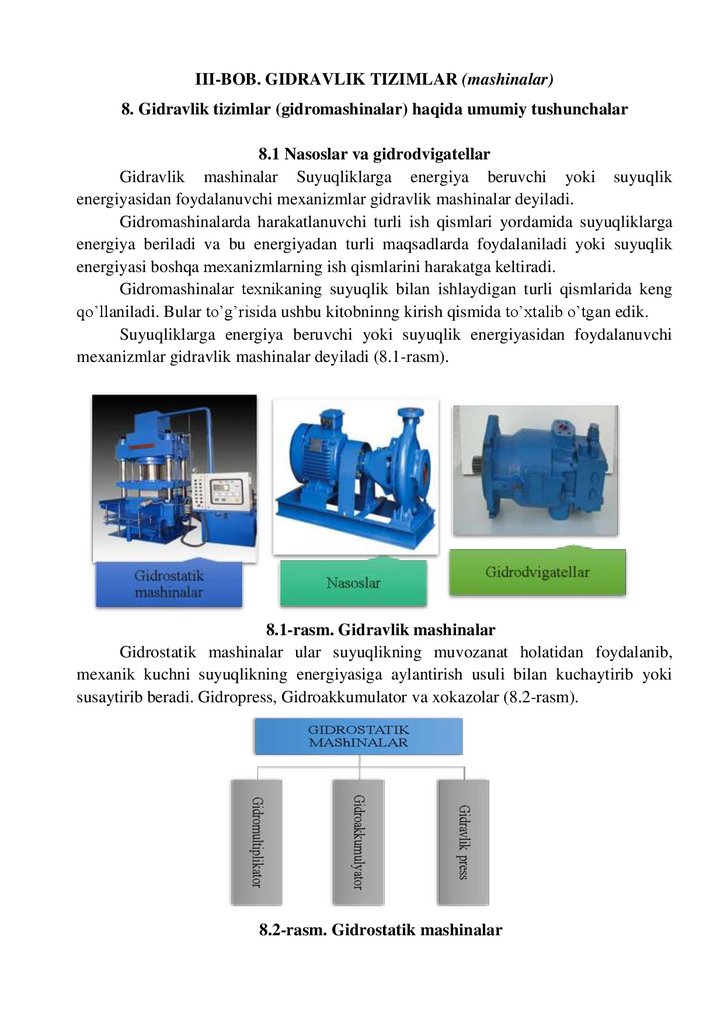 III-BOB. GIDRAVLIK TIZIMLAR (mashinalar)