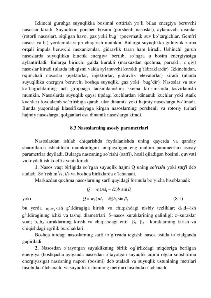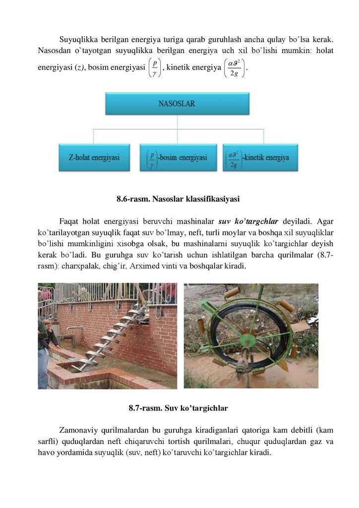 Respublikamiz хalq хo‘jaligida har хil suv uzatuvchi moslamalar (nasoslar)