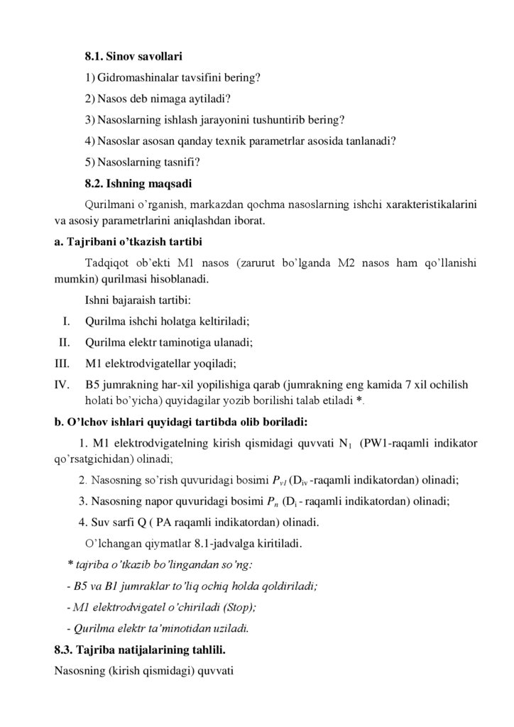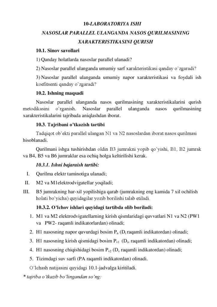 11-LAB. Oqimchali nasoslarning ish prinsipini o‘rganish