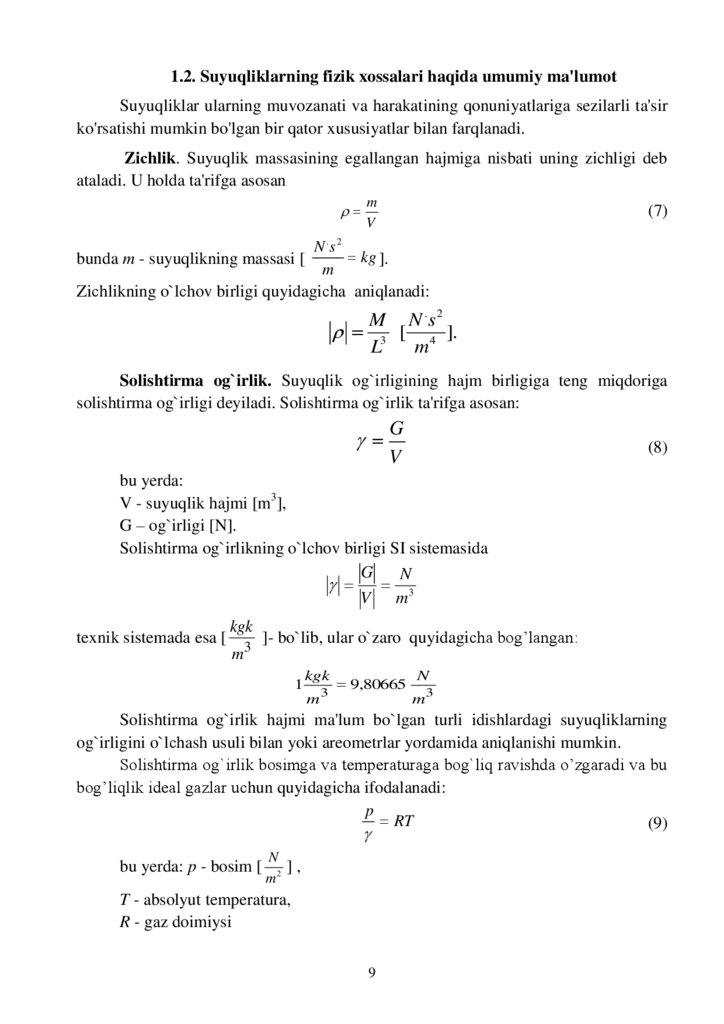 9. Latipov K.Sh. «Gidravlika, gidromashinalar va gidroyuritmalar»- o’quv
