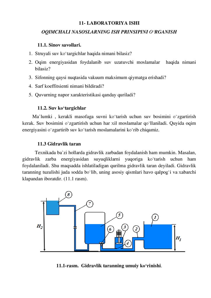13-LAB. Struyali suv ko’targich qurilmasining ish rejimini o‘rganish