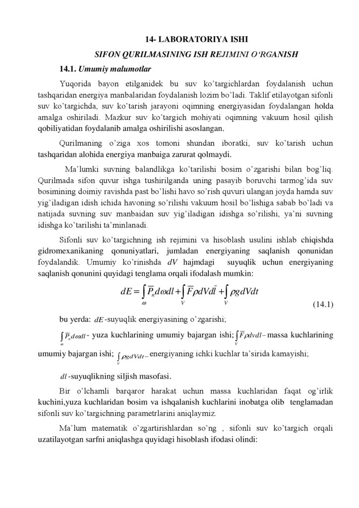14-LAB. Sifon qurilmasining ish rejimini o‘rganish
