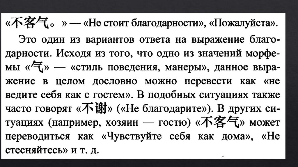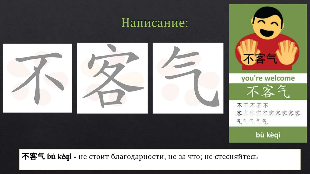 不客气 bú kèqi - не стоит благодарности, не за что; не стесняйтесь