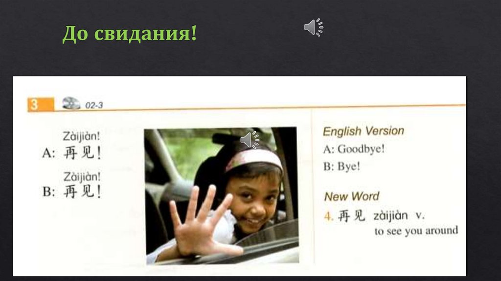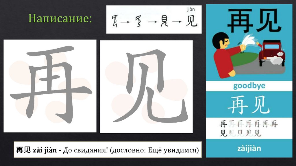 再见 zài jiàn - До свидания! (дословно: Ещё увидимся)