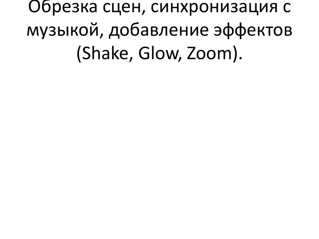 Обрезка сцен, синхронизация смузыкой, добавление эффектов