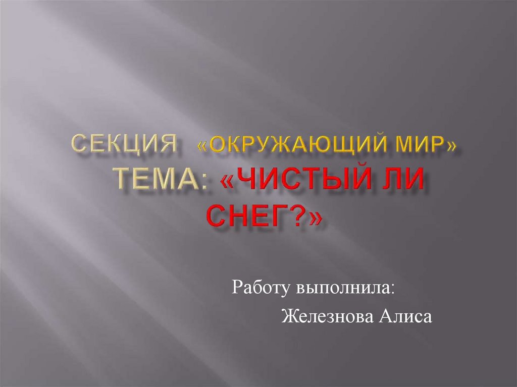1. СЕКЦИЯ «окружающий мир» Тема: «Чистый ли снег?»
