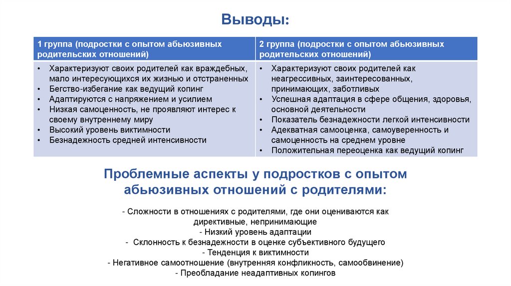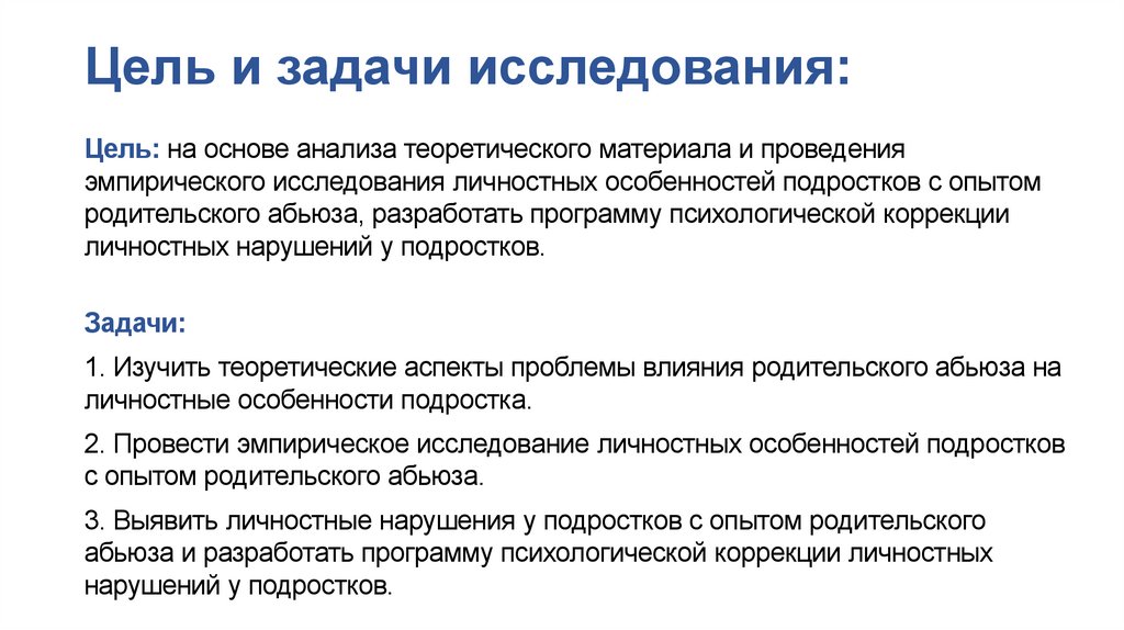 1. Изучить теоретические аспекты проблемы влияния родительского абьюза на