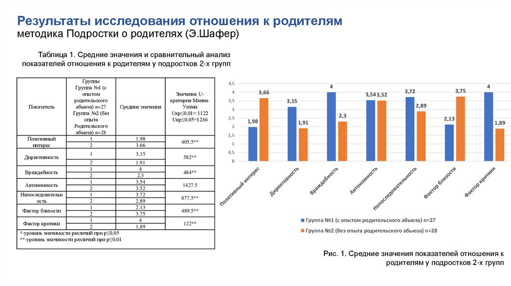 Гипотеза: у подростков с опытом родительского абьюза, в отличие от