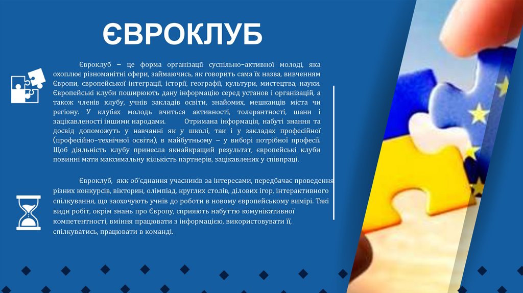 ЄВРОКЛУБЄвроклуб – це форма організації суспільно-активної молоді, яка