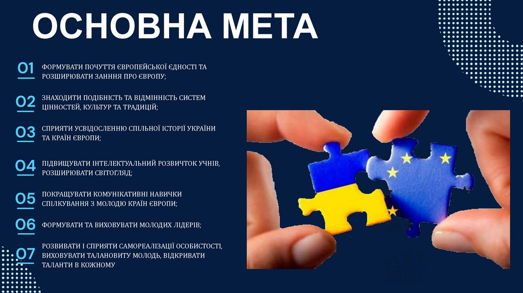 РОЗШИРЮВАТИ ЗАНННЯ ПРО ЄВРОПУ;