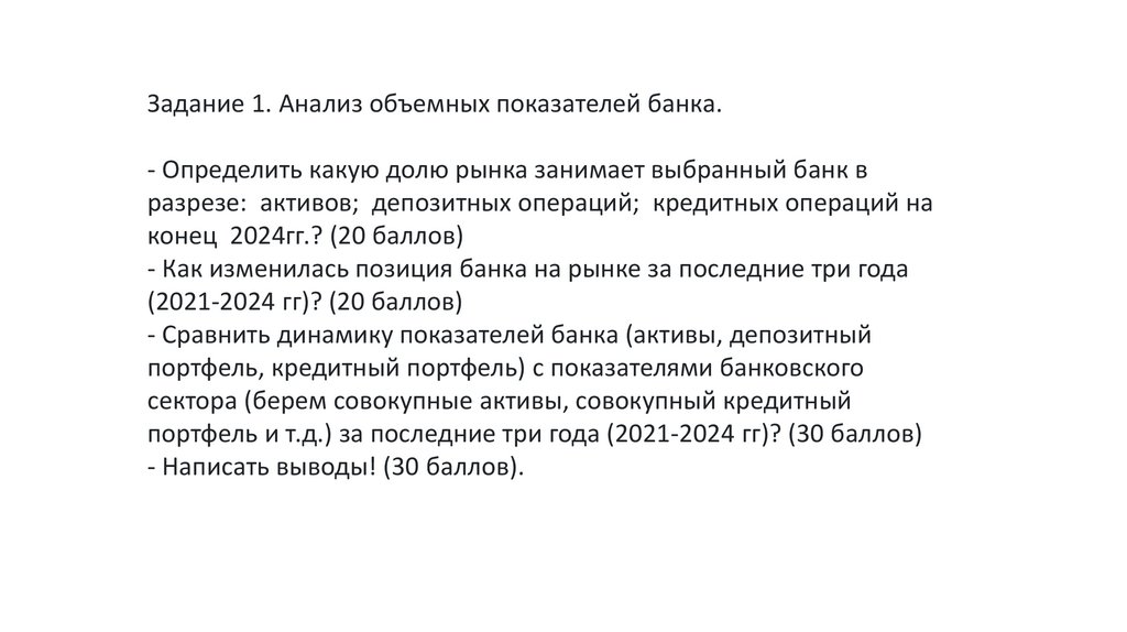 Задание 1. Анализ объемных показателей банка.- Определить какую долю рынка занимает выбранный банк в