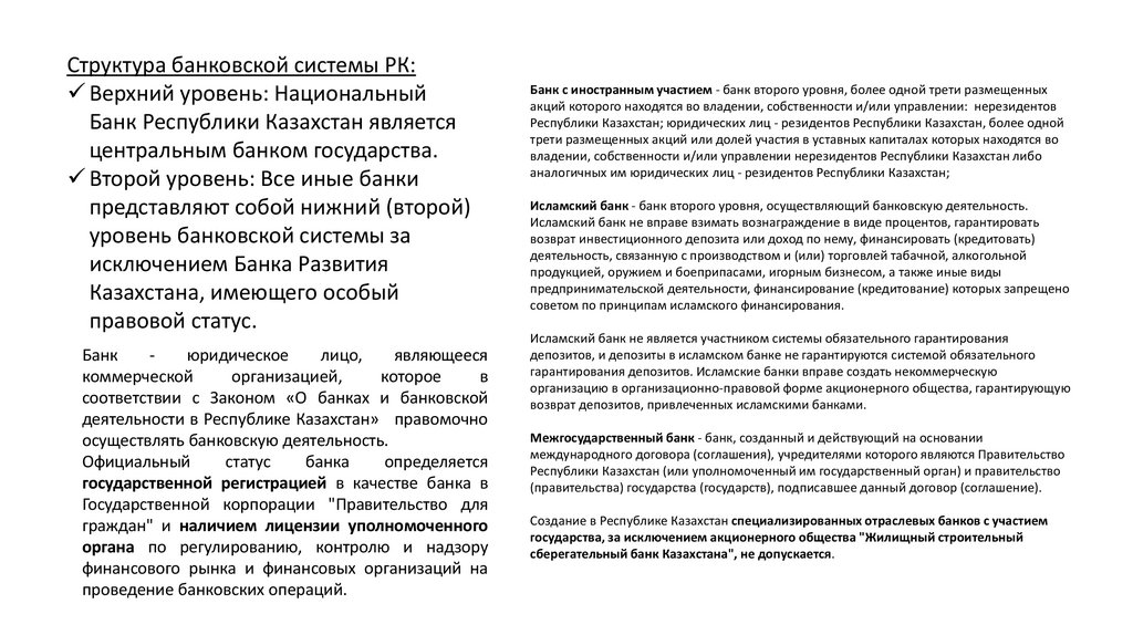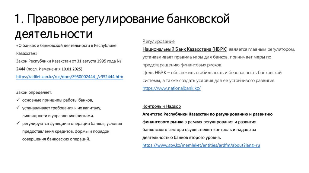 • Закон Республики Казахстан от 31 августа 1995 года, № 2444 «О банках и