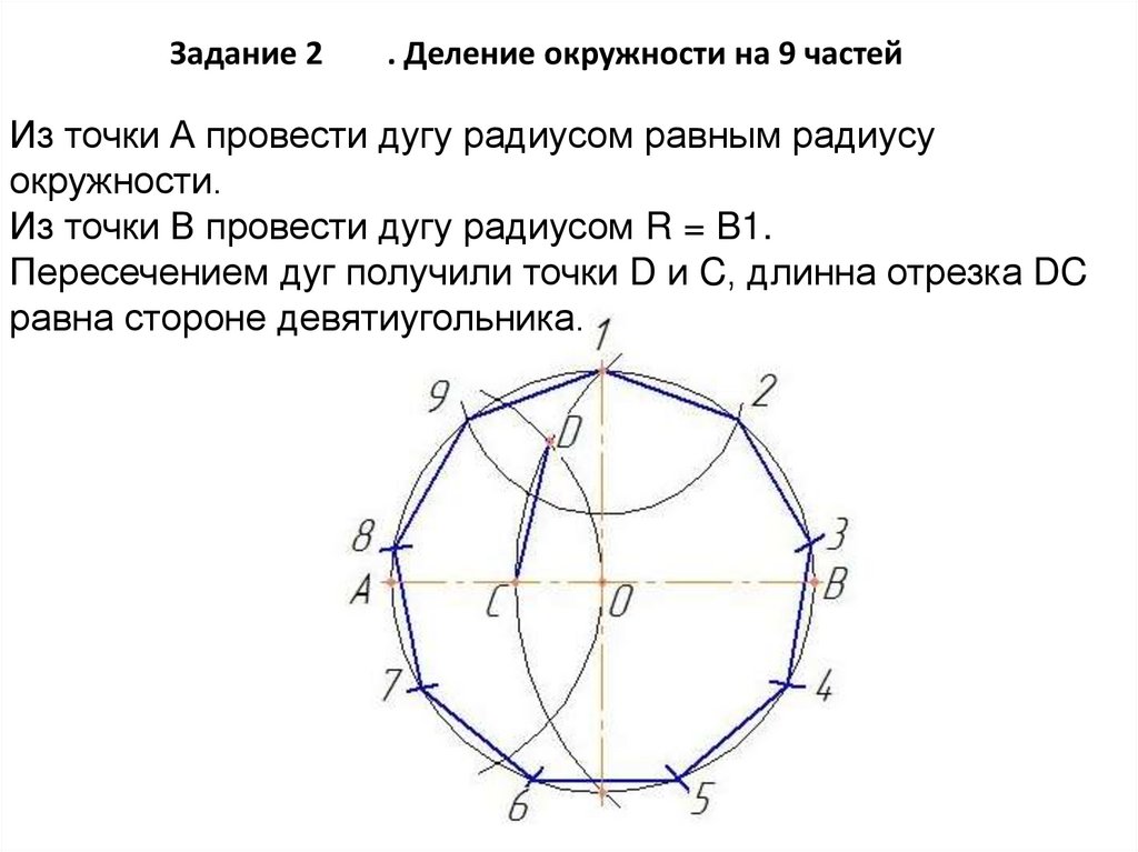 отрезка АС равна радиусу для построения точек 7 и 2.