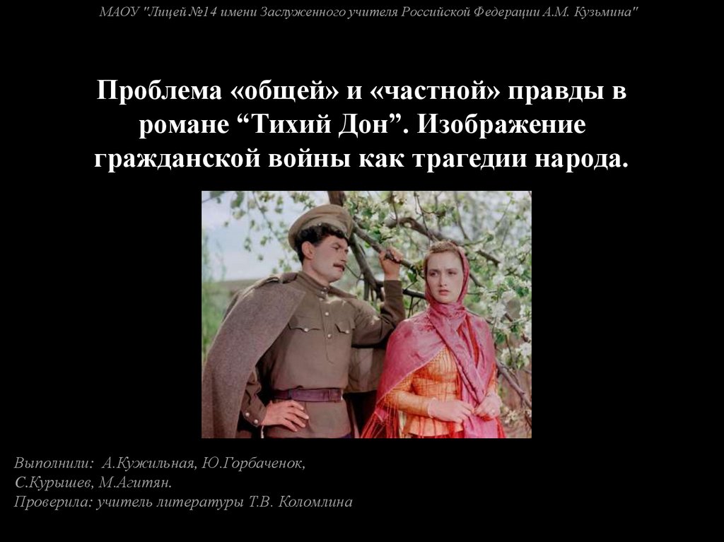 МАОУ "Лицей №14 имени Заслуженного учителя Российской Федерации А.М. Кузьмина"Проблема «общей» и «частной» правды в