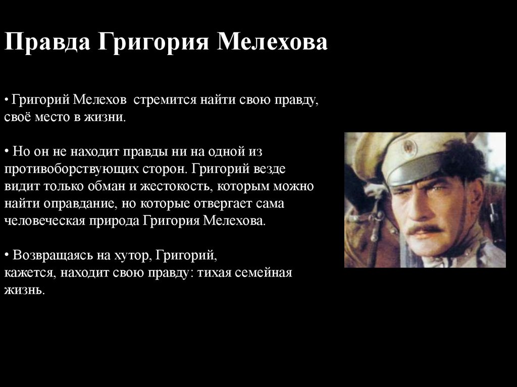 Правда Григория Мелехова• Григорий Мелехов стремится найти свою правду,