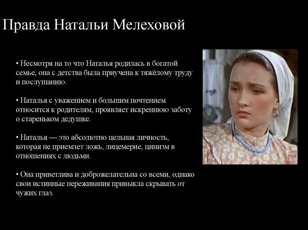 Правда Натальи Мелеховой• Несмотря на то что Наталья родилась в богатой