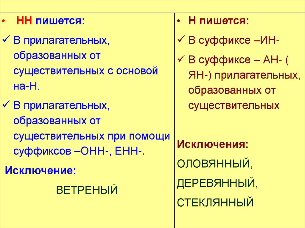 • НН пишется:• Н пишется: