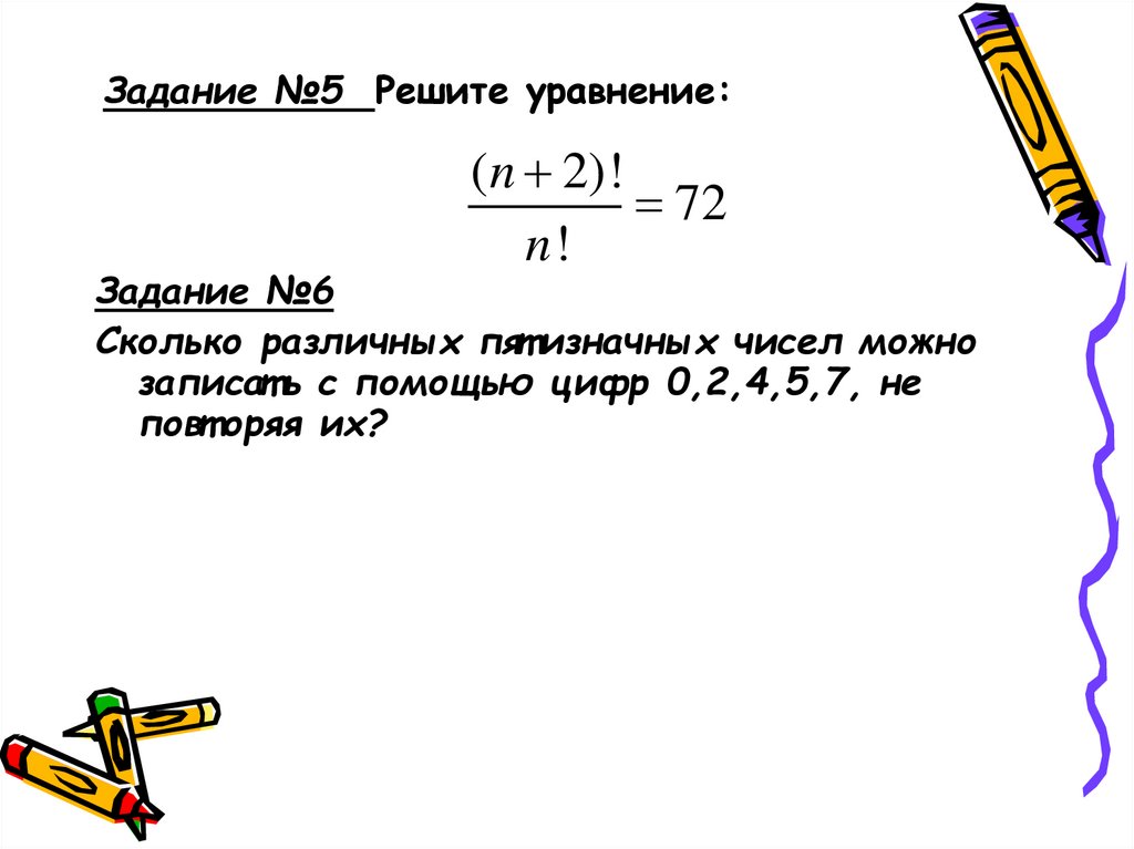 Задание №5 Решите уравнение:(n 2)!
