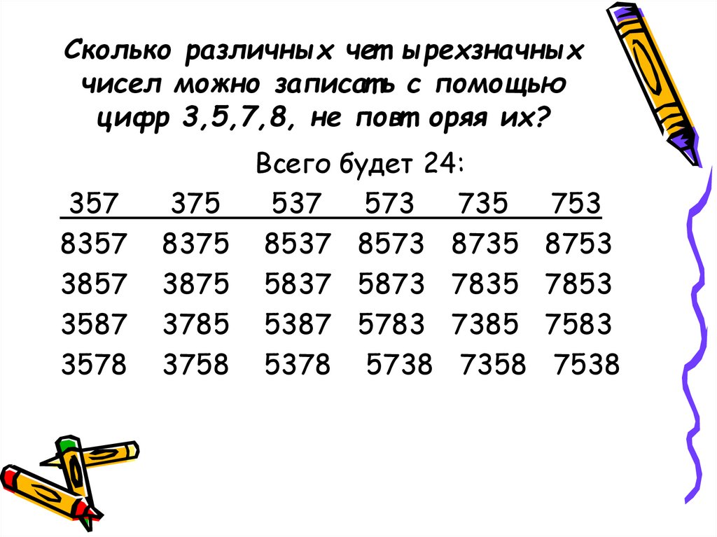 цифр 3,5,7,8, не повт оряя их?