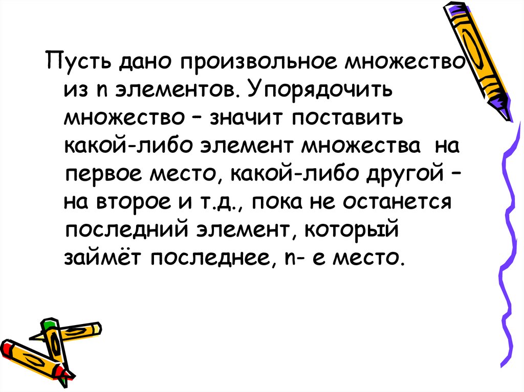 Пусть дано произвольное множествоиз n элементов. Упорядочить