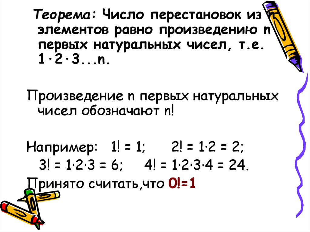 чисел обозначают n!