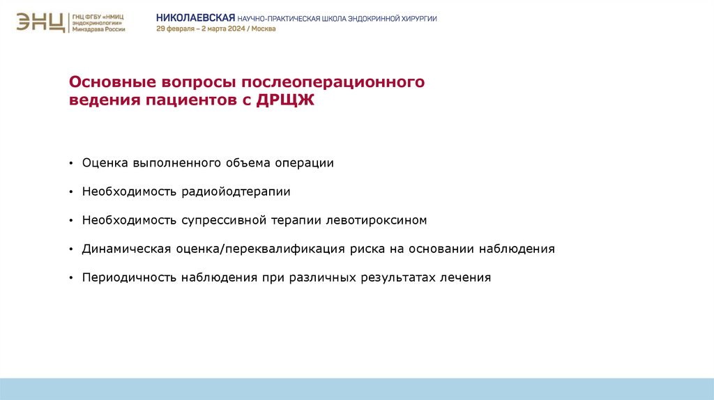 Основные вопросы послеоперационноговедения пациентов с ДРЩЖ