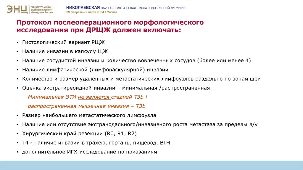 • Оценка экстратиреоидной инвазии – минимальная /распространенная