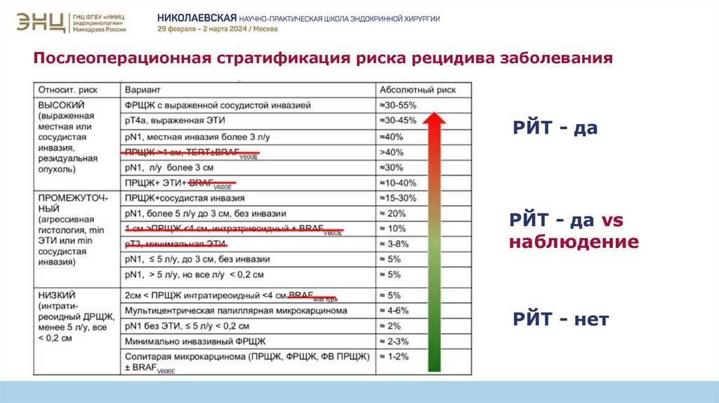 Послеоперационная стратификация риска рецидива заболеванияРЙТ - да