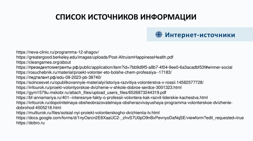 СПИСОК ИСТОЧНИКОВ ИНФОРМАЦИИИнтернет-источники