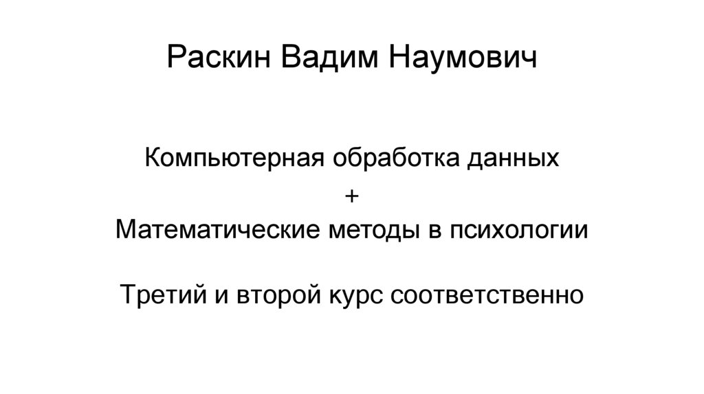 Раскин Вадим НаумовичКомпьютерная обработка данных