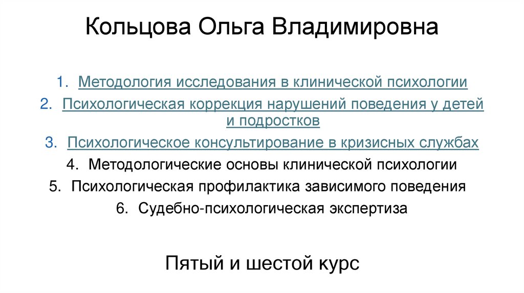 Кольцова Ольга Владимировна1. Методология исследования в клинической психологии
