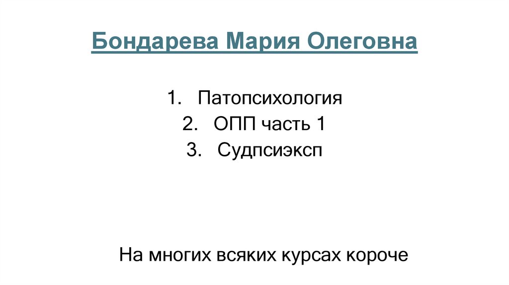 Бондарева Мария Олеговна1. Патопсихология
