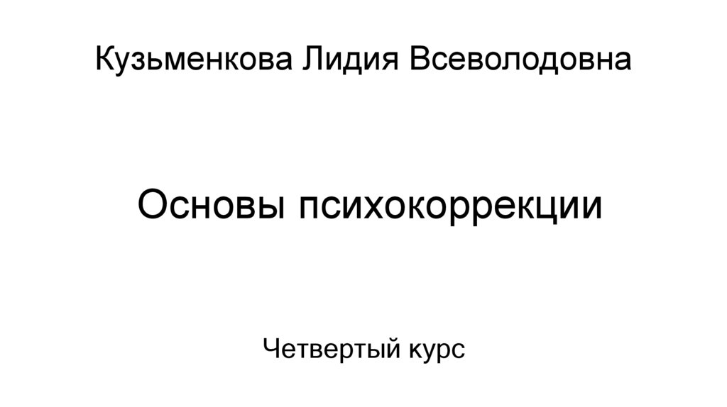 Кузьменкова Лидия ВсеволодовнаОсновы психокоррекции