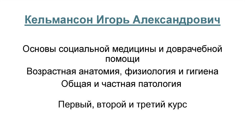 Кельмансон Игорь АлександровичОсновы социальной медицины и доврачебной