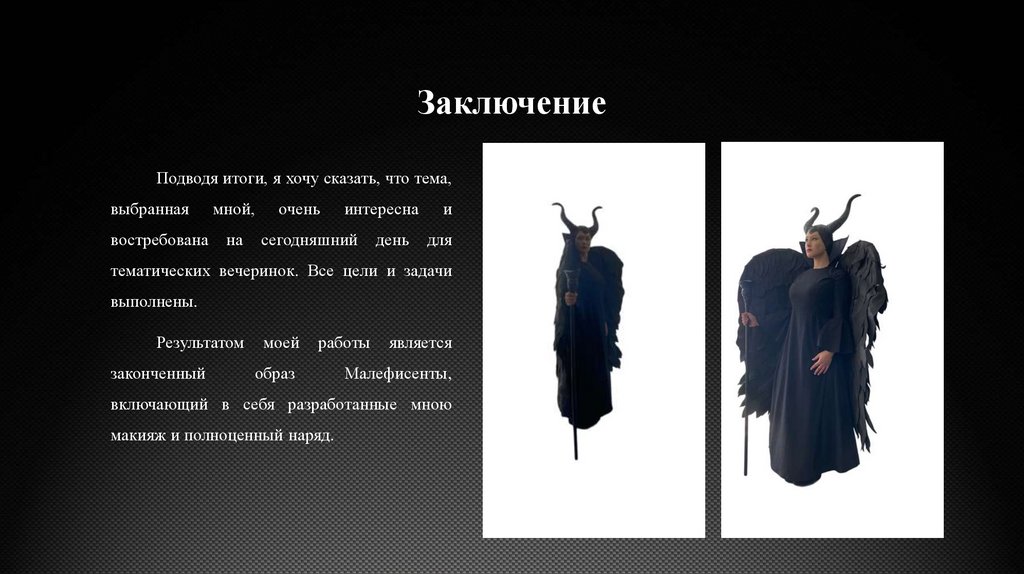 Выполнить образ персонажа из фильма «Малефисента».