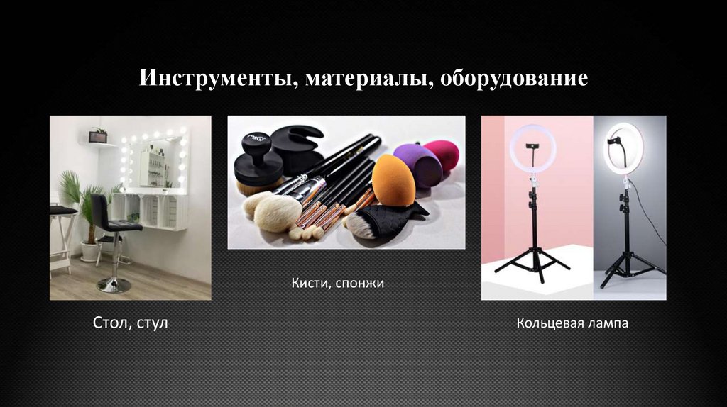 Инструменты, материалы, оборудованиеКисти, спонжи