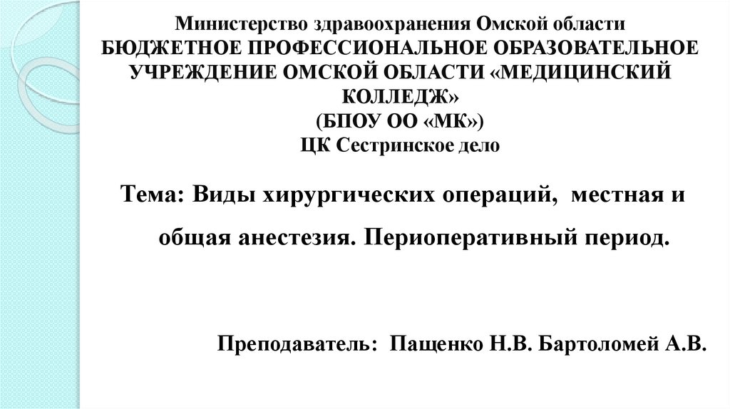 Министерство здравоохранения Омской областиБЮДЖЕТНОЕ ПРОФЕССИОНАЛЬНОЕ ОБРАЗОВАТЕЛЬНОЕ