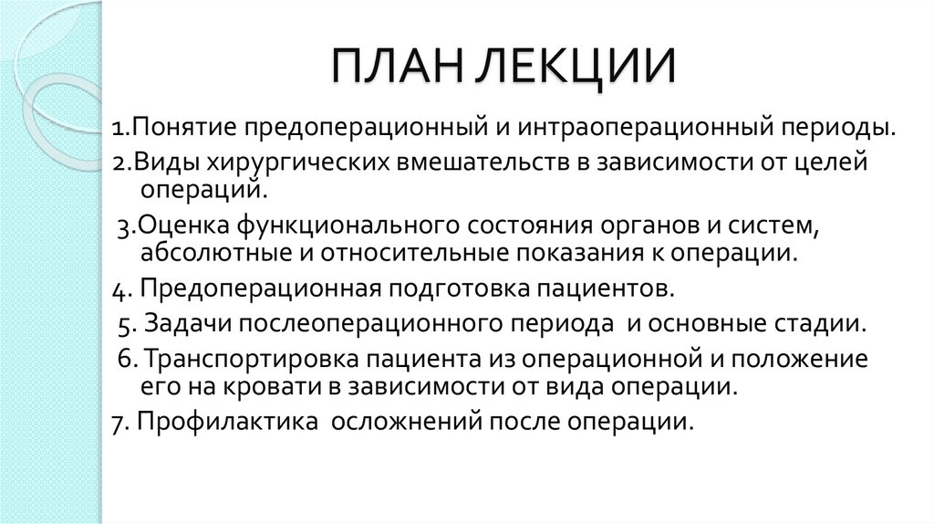 ПЛАН ЛЕКЦИИ1.Понятие предоперационный и интраоперационный периоды.