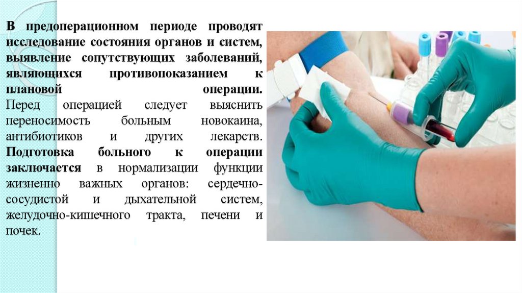 В предоперационном периоде проводятисследование состояния органов и систем,