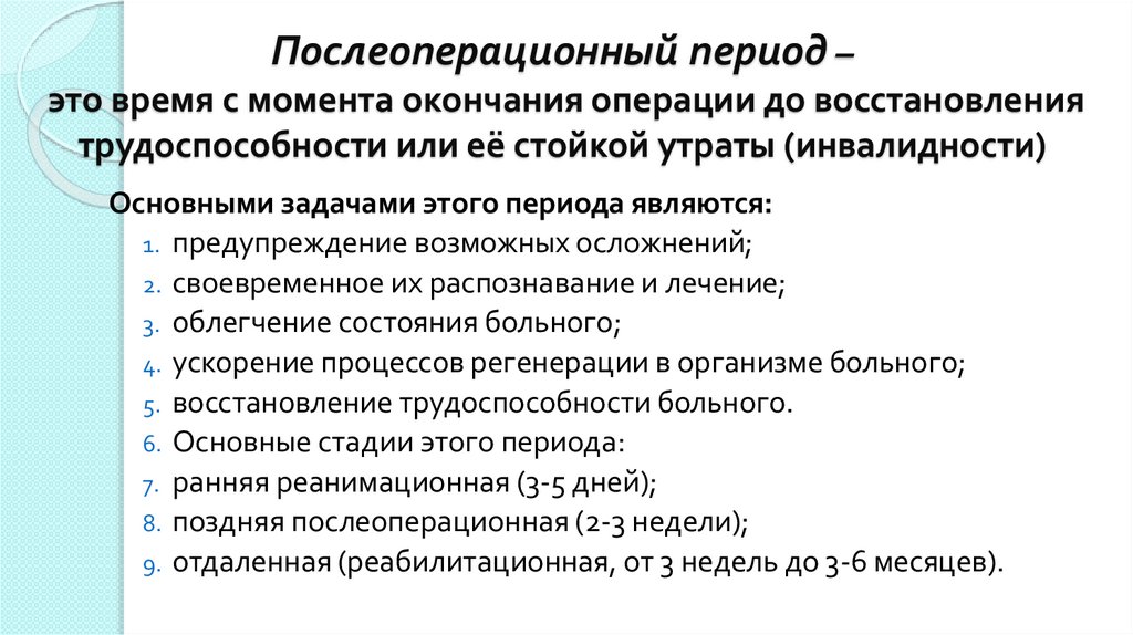 Периоперационный период - это время необходимое дляподготовки больного к операции, выполнение операции и