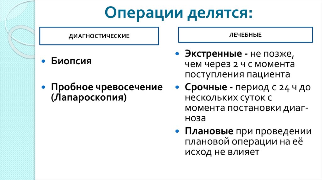 Операции делятся:ДИАГНОСТИЧЕСКИЕ