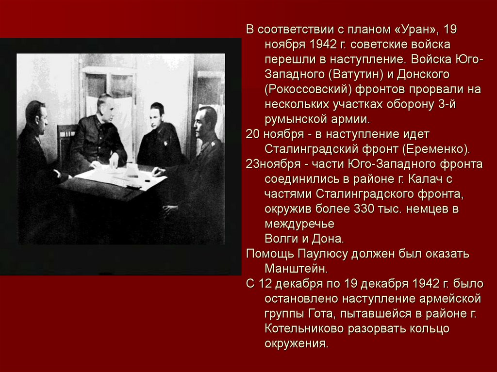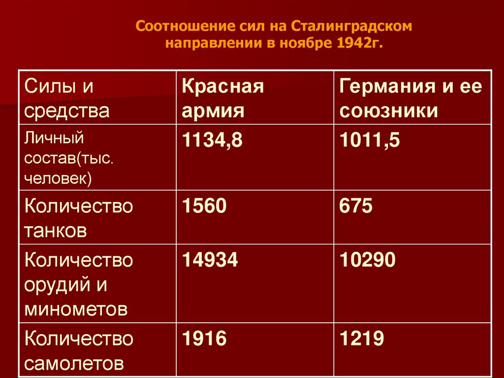 Соотношение сил на Сталинградскомнаправлении в ноябре 1942г.