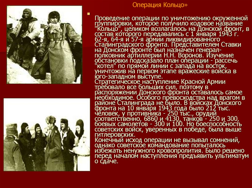 Операция Кольцо»Проведение операции по уничтожению окруженной