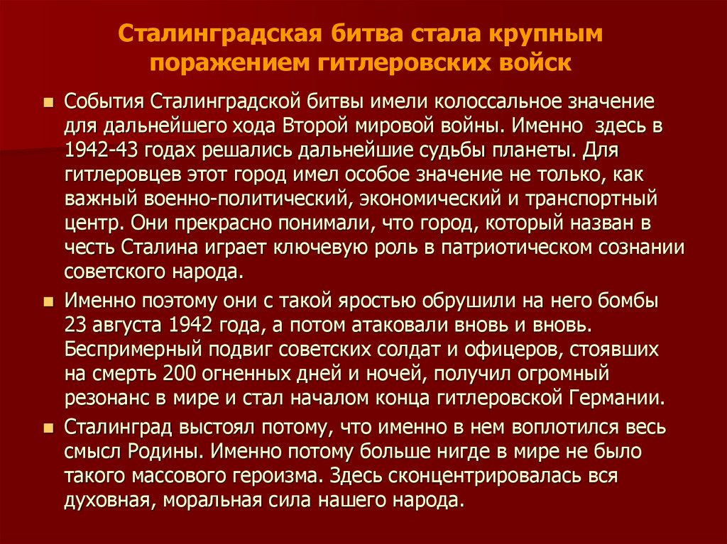 Сталинградская битва стала крупнымпоражением гитлеровских войск