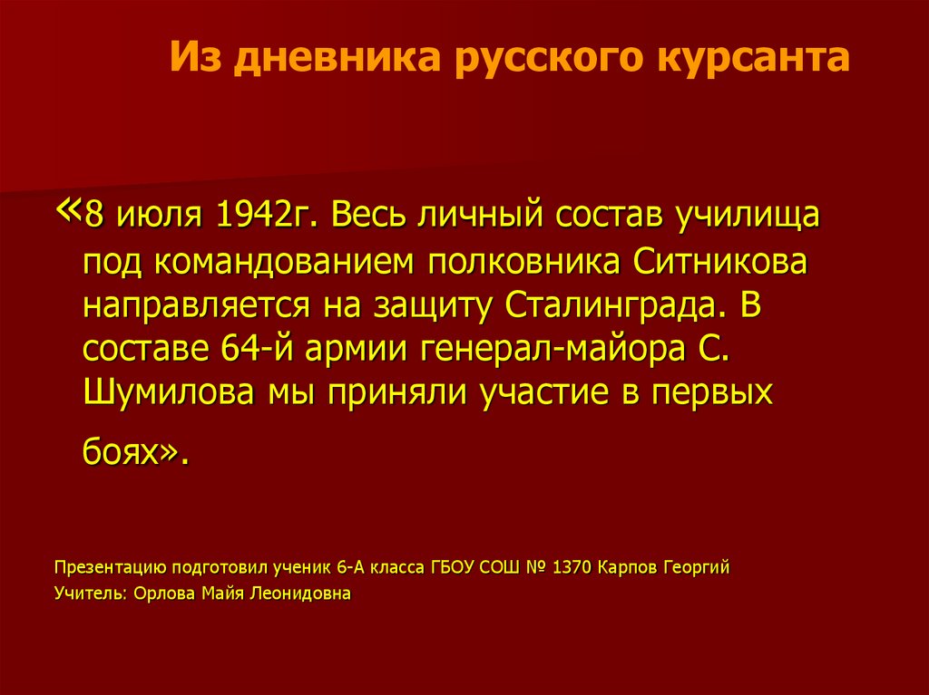 Из дневника русского курсанта«8 июля 1942г. Весь личный состав училища